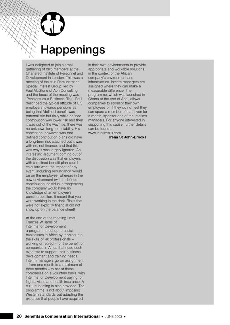 Interims for Development is the brainchild of Frances Williams, an HR practitioner with a financial services background including posts at Barings Securities and Enron.